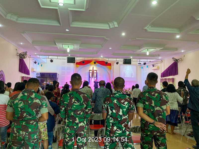 Hal tersebut terlihat saat personel Satgas TMMD 118 Kodim 0201/Medan mengikuti ibadah mingguan di GSJA “Kasih Karunia”.