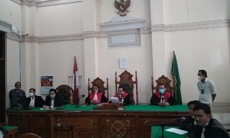 EKSISNEWS.COM, Medan – Sidang lanjutan Sunardi alias Gundok dan Syafwan Habibi yang beragendakan pembacaan putusan dari Majelis Hakim yang diketuai Abdul Kadir, nyaris ricuh. Dalam putusan Majelis Hakim saat di persidangan yang digelar secara virtual di ruang Cakra 2 Pengadilan Negeri (PN) Medan, Rabu (24/3/2021) menyebutkan bahwa penuntutan dari Jaksa Penuntut Umum (JPU), Lamria Sianturi, tidak dapat diterima. Selain itu Majelis Hakim dalam putusannya juga memerintahkan Jaksa untuk mengeluarkan Gundok dan Syafwan Habibi dari tahanan sejak dibacakan putusan.