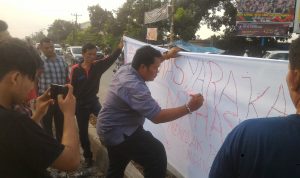Pantauan di lapangan para warga dan mahasiswa membubuhkan tandatangan ke spanduk yang terpancang di simpang Unimed yang ditutup tersebut sebagai bentuk rasa keberatan atas penutupan permanen simpang Unimed itu.