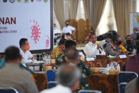 “Setelah ini saya tidak perlu mengeluarkan Surat Edaran lagi. Status tanggap darurat berakhir hari ini, selanjutnya kita masuk masa transisi, untuk menentukan apakah kita akan menerapkan New Normal, Disorder dan Survival. Prosesnya bisa seminggu, bisa juga dua minggu, selama itu kita akan menerima masukan dari berbagai pihak, tapi bukan berarti warga bisa dengan bebas keluyuran keluar rumah,” ujar Gubernur Sumut Edy Rahmayadi saat memimpin rapat Petunjuk Strategis GTPP Covid 19 Pascastatus Tanggap Darurat dengan Forkopimda Sumut di Pendopo Rumah Dinas Gubernur, Jalan Jenderal Sudirman No 41 Medan, Jumat (29/5/2020).