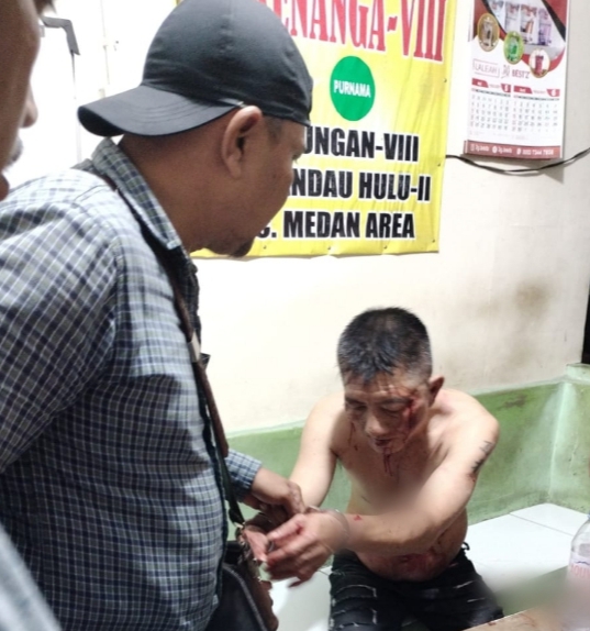 Namun, tak lama berselang personel Polsek Medan Area turun ke lokasi mengamankan pelaku yang sudah babak belur.