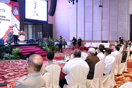 Rakor ini dihadiri hampir seluruh Kepala Daerah se-Sumut termasuk pimpinan DPRD dan juga Kapolres. Selain itu di isi narasumber yang kompeten seperti Pangdam I/BB Mayjen TNI Achmad Daniel Chardin dan Direktur Jenderal (Ditjen) Bina Keuangan Daerah Kemendagri Agus Fatoni, serta Kepala BPK RI Perwakilan Sumut Eydu Oktain Panjaitan dan Kakanwil Ditjen Perbendaharaan Provinsi Sumut Tiarta Sebayang dan Kepala BPKP Sumut Kwinhatmaka.(ENC-2)