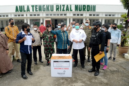 EKSISNEWS.COM, Medan – Provinsi Sumatera Utara (Sumut) menerima 32.880 dosis vaksin Covid-19, Kamis (28/1/2021) di Posko Satuan Tugas (Satgas) Penanganan Covid-19 Sumut, Jalan Jenderal Sudirman Nomor 41, Medan. Vaksin tersebut kemudian akan didistribusikan untuk 30 kabupaten/kota di Sumut.