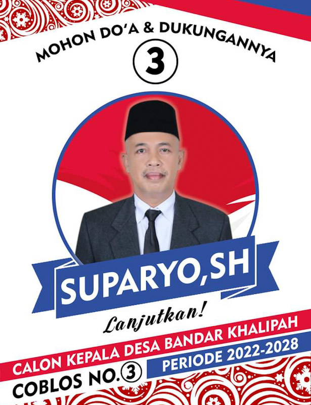 Diketahui, Suparyo SH merupakan calon incumbent yang kembali bertarung dalam pesta demokrasi pemilihan kepala desa (Pilkades) pada 18 April 2022 mendatang, dengan Nomor Urut 3. (ENC-Fr)