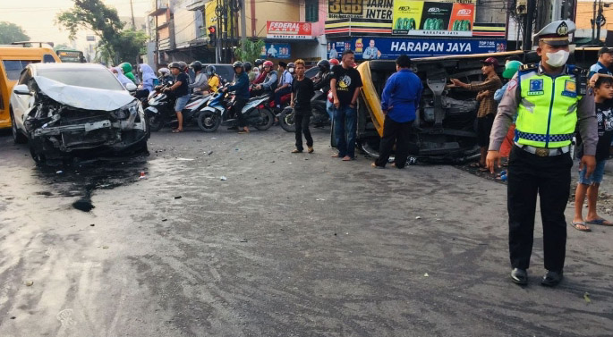 “Ketika di simpang empat lampu merah antara Jalan Letda Sujono dan Jalan Mandala Terjadi tabrakan antara mobil HR V dan mobil angkot tersebut,” kata Bakri.