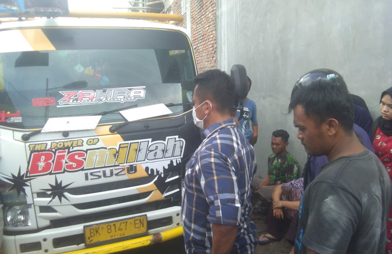 Menurut keterangan dari saksi, Endang, sebelum peristiwa nahas itu terjadi dirinya melihat korban sedang memundurkan mobil truk BK 8147 EN yang sedang membawa bahan bangunan dan langsung diparkirkan.