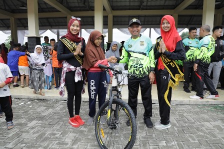 Acara juga diisi dengan pembagian kupon lucky draw yang berhadiah puluhan sepeta kepada masyarakat yang hadir pada acara Car Free Day.(ENC-Akm)