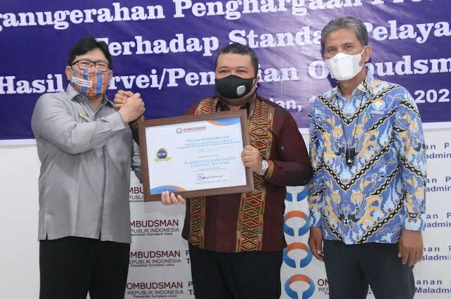 EKSISNEWS.COM,Tapanuli Selatan – Bupati Tapanuli Selatan Dolly Putra Pasaribu, Selasa (18/1/22) bersama 7 kepala daerah lainnya di Sumatera Utara menjadi penerima penghargaan dari Ombudsman RI tentang Kepatuhan Terhadap Pelayanan Publik Zona Hijau.