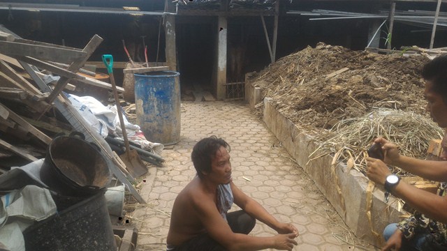 Dengan wajah babak belur dan kepala mengeluarkan darah karena pukulan para warga, Alimudin kemudian digiring ke kandang lembu Budi untuk diinterograsi para warga.