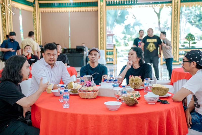 Selain menyuguhi durian yang merupakan buah khas Kota Medan, menantu Presiden Joko Widodo itu juga menunjukkan mobil dinasnya yang telah dimural oleh anak kreatif Medan. “Ini (mobil dinas dimural) sebagai bentuk perhatian dan dukungan Pemko Medan atas karya anak-anak Kota Medan,” kata Bobby Nasution.