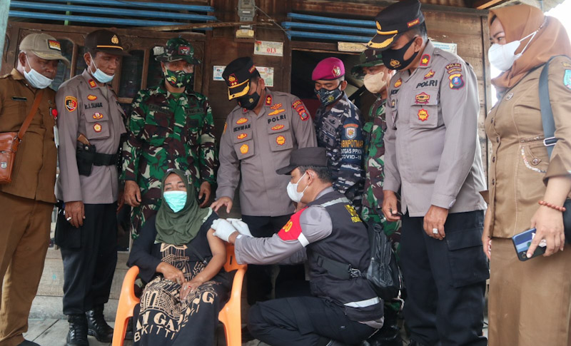 “Oleh sebab itu sebagai anak negri yang baik dan kami yang mewakili AKABRI angkatan 90 melakukan aksi terobos daerah terisolir dengan menyebrangi lautan serta berjalan kaki mendatangi masyarakat dari rumah ke rumah dengan membawa vaksinator yang kami sediakan serta sekaligus membagikan sembako Kepada masyarakat sebagai bentuk Pengabdian kami kepada Negara Kesatuan Republik Indonesia,” ungkap Kapolres.