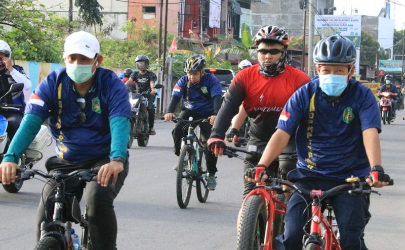EKSISNEWS.COM, Medan – Penjabat Sementara (Pjs) Wali Kota Medan Ir Arief Sudarto Trinugroho MT bersama Sekda Kota Medan Ir Wiriya Alrahman MM kembali melaksanakan gowes bersama, Jumat (5/11). Kali ini gowes bersama keluarga besar  Dinas Penanaman Modal dan Pelayanan Terpadu  Satu Pintu (PMPTSP) Kota Medan. Kali ini jarak yang ditempuh sepanjang lebih kurang 25 Km, selain meningkatkan imunitas tubuh guna mencegah penukaran Covid-19, gowes juga untuk meningkatkan tali silaturahmi.