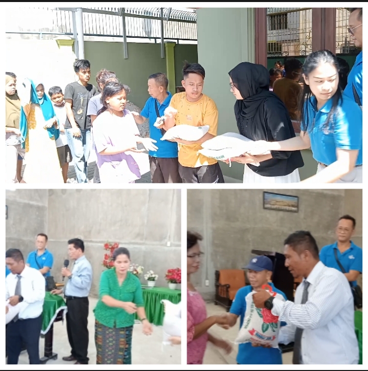 Ketua Umum YAKIN Hermanto ST, bersama isteri Leni, didampingi Sekretaris Ariyanti serta pengurus lainnya, yakni Wakil Bendahara Hock Siang dan Admin Adilla Saragih, tampak turun ke GKPI Imanuel Sidomulyo membagikan sembako kepada ratusan jemaat di gereja tersebut.