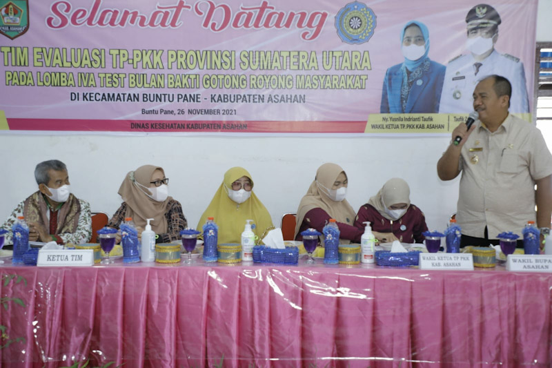 EKSISNEWS.COM, Kisaran – Tim Evaluasi Penilaian Lomba TP. PKK Provinsi Sumatera Utara (Provsu) melakukan penilaian kepada 4 Desa yang mengikuti lomba tingkat TP. PKK Provsu yakni Desa Hessa Air Genting Kecamatan Air Batu lomba PAAR, Puskesmas Prapat Janji Kecamatan Buntu Pane lomba Iva Test, Desa Taman Sari Kecamatan Pulau Bandring lomba Hatinya PKK, Desa Pasiran Kecamatan Sei Dadap lomba Tertip Administrasi, Jum’at (26/11/2021).