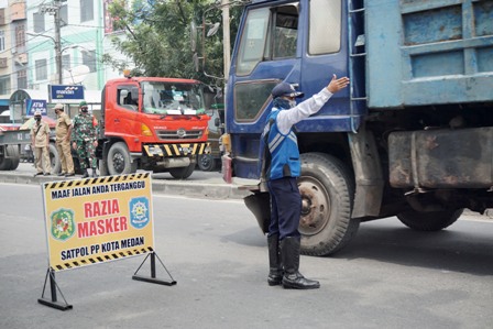 Di Jalan Yos Sudarso, Tim Gabungan yang terdiri GTPP Covid-19 Medan, TNI, Polri dan Satpol PP memberikan pengarahan pada masyarakat untuk tetap menggunakan masker di area publik. GTPP Covid-19 Medan juga menerapkan Peraturan Walikota (Perwal) Medan Nomor 11 Tahun 2020 tentang Karantina Kesehatan Dalam Rangka Percepatan Penanganan Corona Virus Disease 2019 (COVID-19) di Kota Medan.