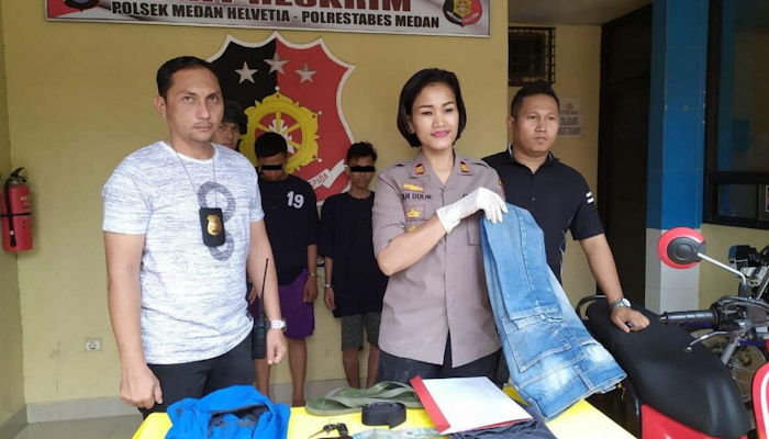 “Itulah nama kedua pelaku yang ada diamankan oleh Tim Pegasus kita, sementara korban bernama Yenni (48) warga Jalan Dahlia Raya Komplek Dahlia Indah No.27 Lingkungan VI Kelurahan Helvetia Tengah Kecamatan Medan Helvetia dan telah membuat pengaduan di Polsek Medan Helvetia ini,” ujar Kapolsek Helvetia AKP Sah Udur boru Sitinjak kepada media.