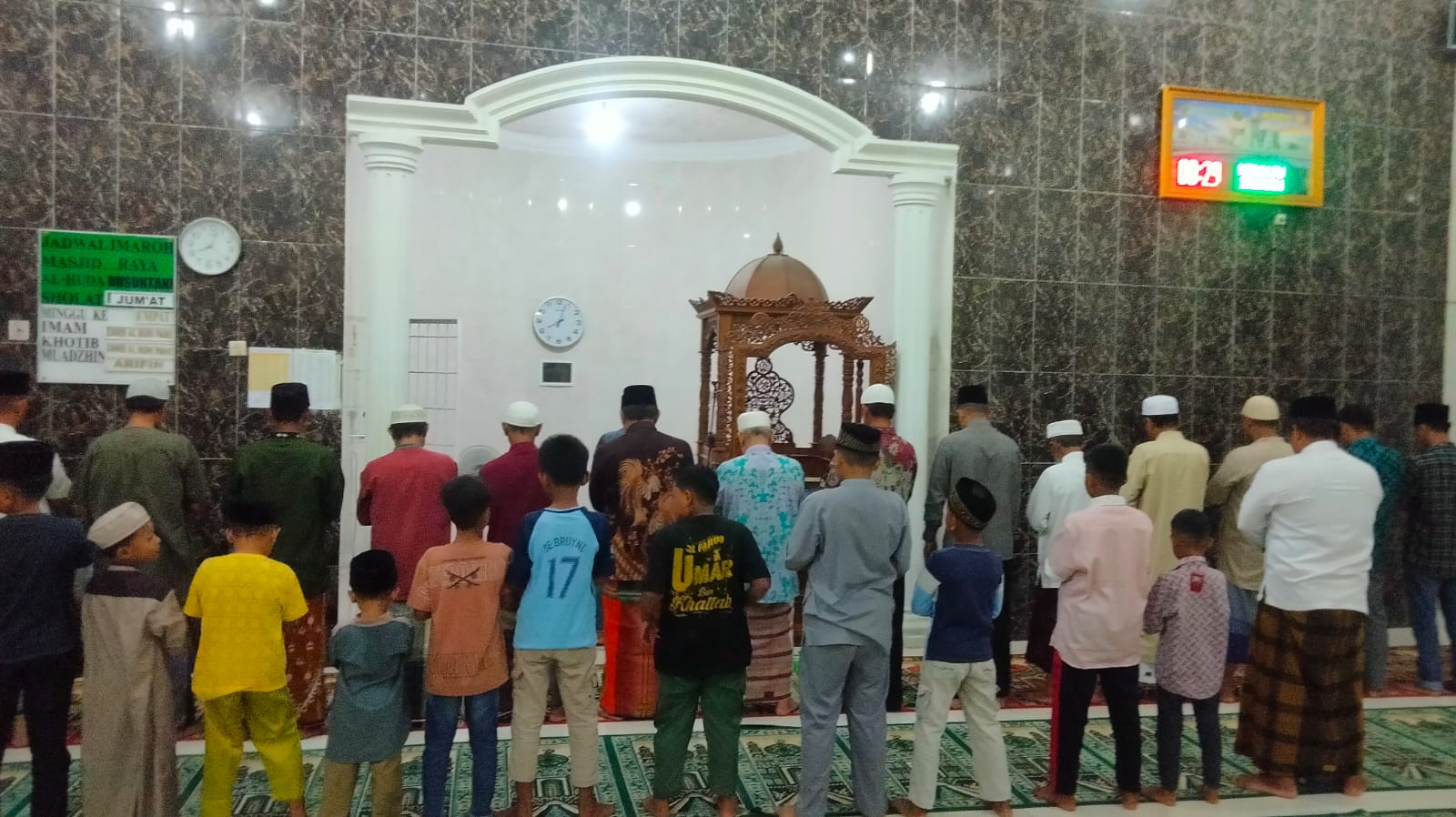 melaksanakan ibadah dan menjalin kebersamaan dengan melaksanakan Shalat Tarawih dan Tadarus bersama warga di Masjid Raya AL-HUDA Dusun Tani Desa Tanjung Putus Kecamatan Padang Tualang,Jum’at (28/02/2025) malam.