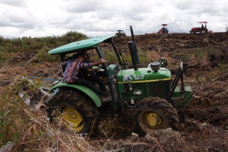 Dari kejauhan, juga tampak sejumlah traktor sedang berjalan menggemburkan tanah. Melihat itu, Mentan, Wagub dan Bupati pun langsung mencoba mengendarai traktor tersebut. Namun lantaran medan yang cukup sulit, traktor yang dikemudikan oleh Mentan hampir tidak terkendali dengan baik dan hampir terbalik.
