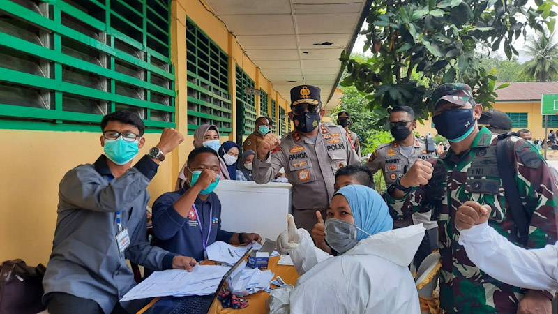 Dalam peninjauan vaksinasi tersebut di dampingi Kapolres Madina, Bupati Mandailing Natal, Wakil Bupati Mandailing Natal, Para pejabat utama Polres Madina, para kepala OPD Pemkab Madina.