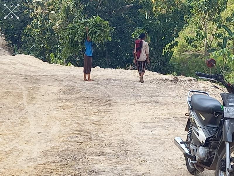 Salah satunya Bapak Atok yang merupakan warga Desa Lama Baru yang terlihat membawa hasil pertanian melintasi jalan tersebut,Kamis (26/05/2022).