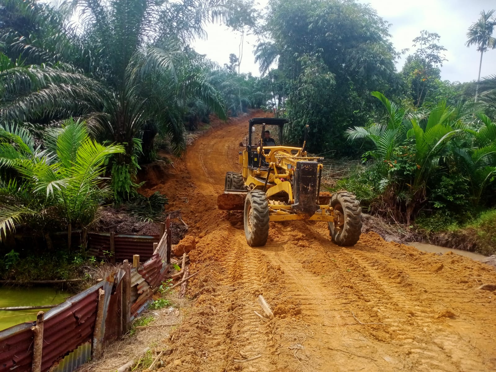 Amatan media saat ini operator alat berat terus melajukan alat beratnya menyusuri badan jalan baru.Meski lokasi becek berlumpur alat berat terus melaju untuk menyelesaikan pembukaan jalan guna mewujudkan impiam warga masyarakat.