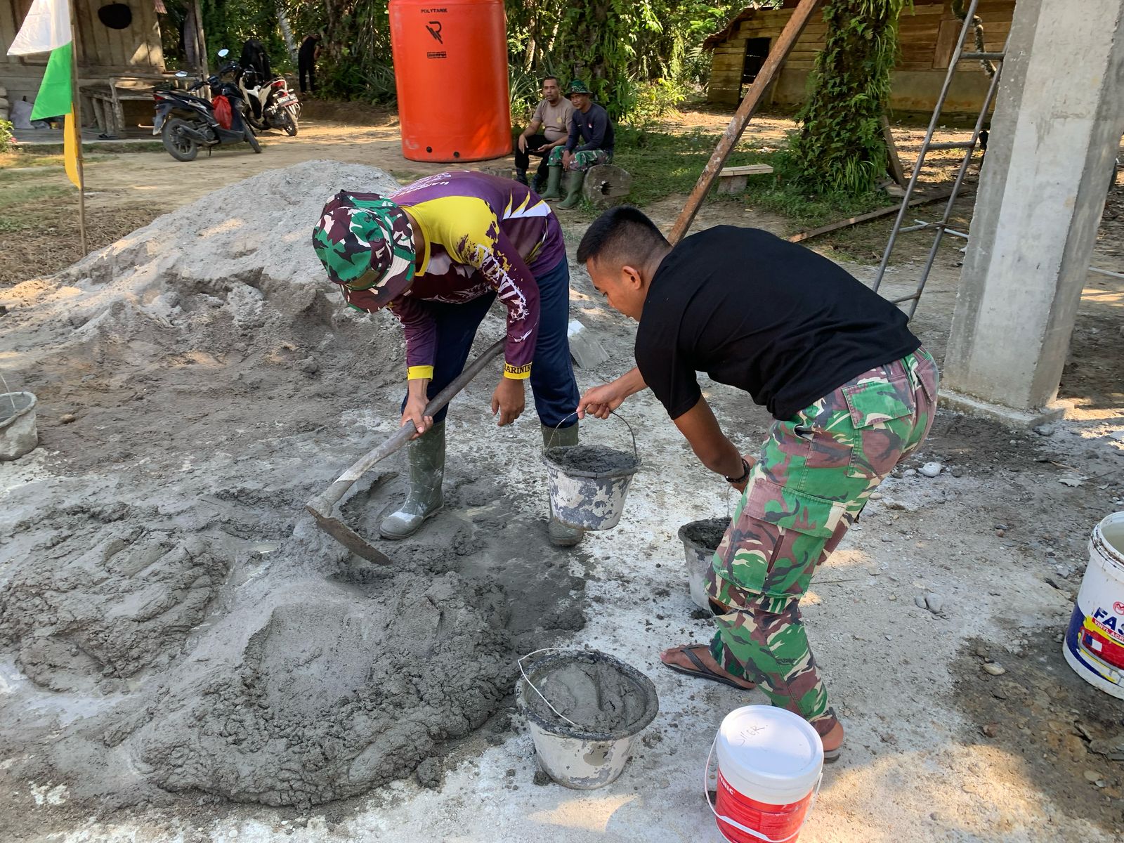 Seperti dalam kegiatan TMMD 123 Kodim 203/Langkat ,disini personel Satgas tiga matra terus melanjutkan pembuatan sumur bor air bersih bagi warga Desa Tanjung Putus,Kecamatan Padang Tualang,Kabupaten Langkat,Provinsi Sumatera Utara (Sumut).