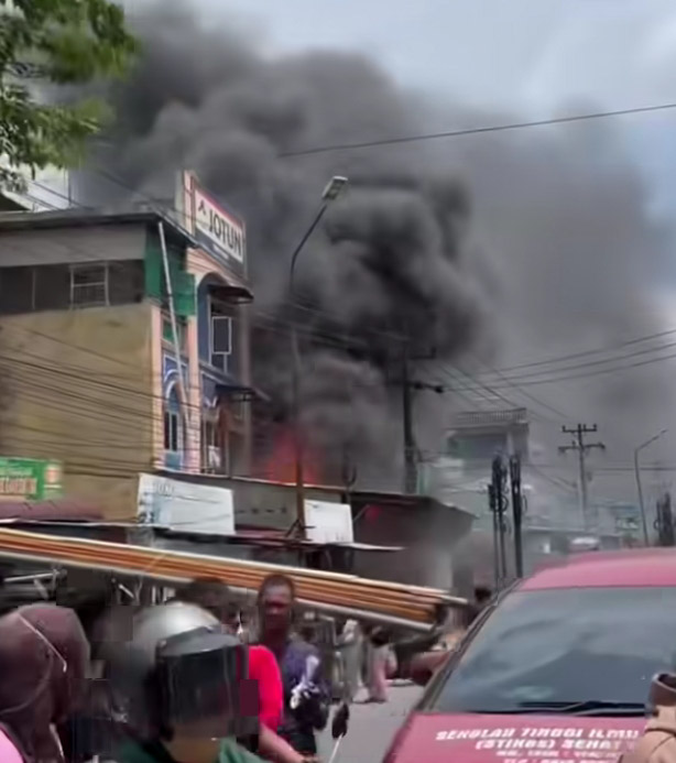 EKSISNEWS.COM, Medan – Kebakaran hebat melanda sebuah toko di Jalan Pasar V Marelan, Kelurahan Rengas Pulau, Kecamatan Medan Marelan, Kota Medan, Kamis (9/4/2026) sekitar pukul 13.00 WIB.