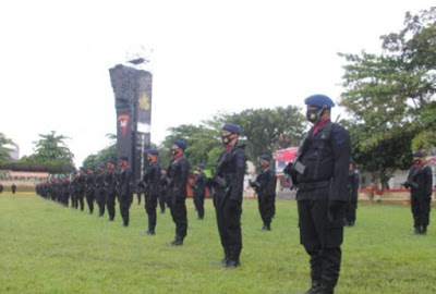 EKSISNEWS.COM, Medan – Upacara Hari Pahlawan 10 November Tahun 2020 di Mako Satuan Brimob Polda Sumut, pada Selasa (10/11/2020) terlihat khikamd.