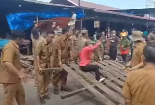 Aksi pengangkatan tersebut mendapat perlawanan dari para pedagang kaki lima. Di mana pedagang yang mempertahankan lapaknya terlihat tarik-menarik dengan petugas.
