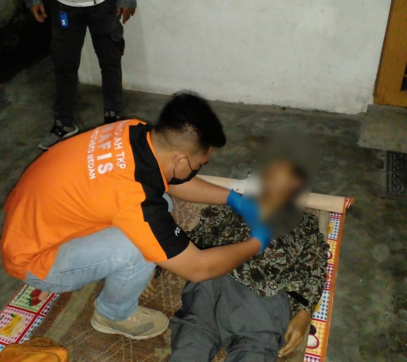 Personel Polsek Percut Sei Tuan yang mendapat informasi langsung ke lokasi dan melihat seorang pria yang diketahui bernama, RM. Siahaan (50), sudah tidak bernyawa lagi.