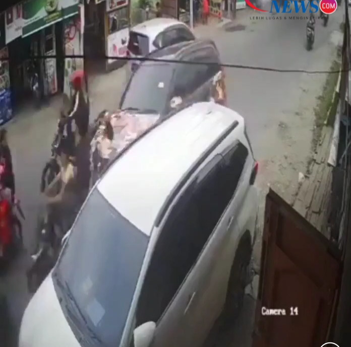 Informasi diperoleh, kecelakaan maut ini juga terekam kamera CCTV yang terpasang di sekitar lokasi kejadian. Terlihat mobil dengan kerasnya menabrak motor dari arah belakang