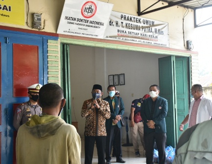 EKSISNEWS.COM, SERGAI – Wakil Bupati Serdang Bedagai (Sergai) H. Darma Wijaya bersama dengan Pengurus Ikatan Dokter Indonesia (IDI) Cabang Sergai membagikan 30 paket sembako kepada kelompok abang becak dan supir angkot di Kantor IDI Cabang Sergai, Sei Rampah, Kamis (23/4/2020).