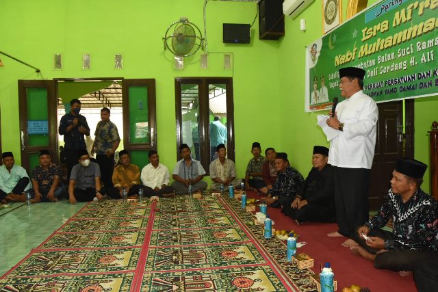 EKSISNEWS.COM, Pagar Merbau – Wakil Bupati Deli Serdang HM Ali Yusuf Siregar hadiri peringatan Isra’ Mi’raj Nabi Muhammad SAW 1443 H, di Masjid Nurul Hidayah Desa Tanjung Garbus Kampung Kecamatan Pagar Merbau,  Minggu (27/3/2022).