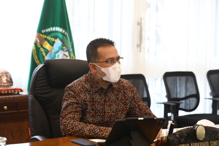 EKSISNEWS.COM,Medan – Wakil Gubernur (Wagub) Sumatera Utara (Sumut) Musa Rajekshah mengikuti video conference (vidcon) peluncuran (launching) Sinergitas Pengelolaan Bersama Monitoring Centre For Prevention (MCP) serta Rakorwasdanas tahun 2021 dari Rumah Dinas Wagub, Jalan Teuku Daud Medan, Selasa (31/8/2021).