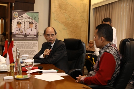 “Kami datang ke sini karena kami mengetahui bahwa Sumut punya potensi yang sangat besar sekali, karena perannya sudah sangat penting dalam pergerakan ekonomi. Jadi kami pun datang bersama delegasi 10 perusahaan asal Swiss yang beroperasi di sini. Mereka sudah banyak bercerita tentang produksi dan investasi yang mereka jalankan. Saya sangat menghargai peluang untuk dapat berdialog langsung dengan bapak Wagub,” ungkapnya.