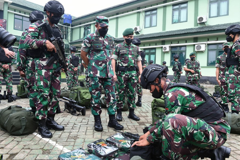 EKSISNEWS.COM, Jakarta – Wakil Kepala Staf Angkatan Darat (Wakasad) Mayor Jenderal TNI Agus Subiyanto, S.E., M.Si., melaksanakan pengecekan sekaligus memeriksa kesiapan operasi (Riksiapops) Satgas Tim Taipur Batalyon Satria Sandi Yudha Kostrad yang akan melaksanakan tugas operasi Pamtas RI-PNG Kewilayahan di wilayah Papua, bertempat di Kompi Taipur Batalyon Satria Sandi Yudha Kostrad Cilodong, Depok, Selasa (15/2/2022).