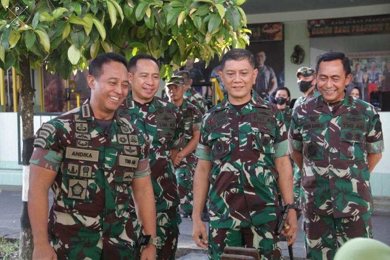 EKSISNEWS.COM, Jakarta – Wakil Kepala Staf Angkatan Darat (Wakasad) Letjen TNI Agus Subiyanto bersama-sama Danjen Akademi TNI, Pangdam IX/Udayana dan Danrem 162/WB menyambut kedatangan Panglima TNI Jenderal TNI Andika Perkasa di Makorem 162/Wira Bhakti di Kota Mataram, Nusa Tenggara Barat. Jumat, (13/5/2022).