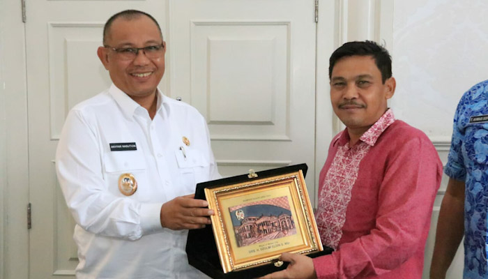 MEDAN, Eksisnews.com – Usai membuka Sosialisasi Perpres No.87/2016 tentang Tim Satgas Saber Pungli dan Unit Pemberantasan Pungli (UPP) Kota Medan, Pelaksana tugas (Plt) Wali Kota Medan Ir H Akhyar Nasution MSi menerima kunjungan Wakil Bupati Mukomuko, Provinsi Bengkulu, Haidir SIP di D’Heritage Grand Aston Hotel Medan, Kamis (12/12).