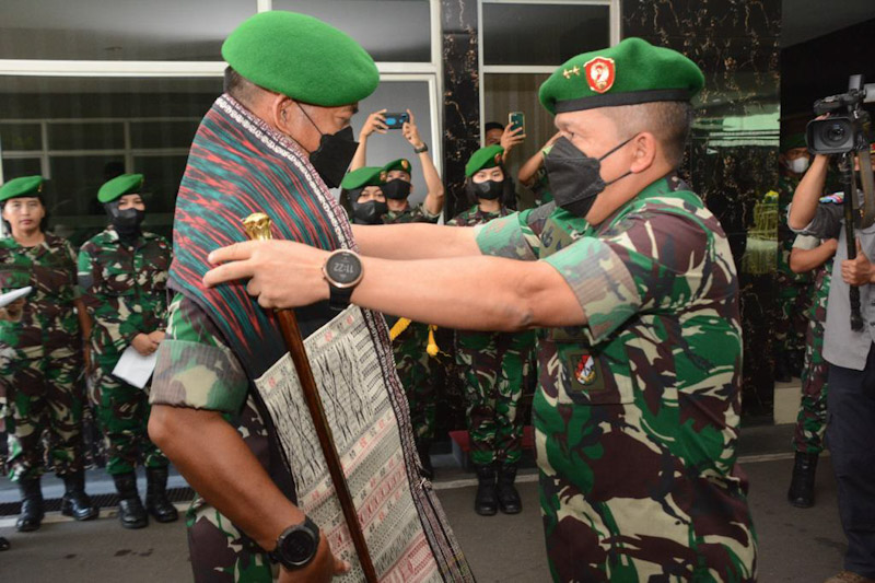 EKSISNEWS.COM, Medan – Panglima Komando Daerah Militer I Bukit Barisan Mayjen TNI Achmad Daniel Chardin, SE, MSi, memimpin acara tradisi Korps Pelepasan Mayjen TNI Hassanudin SIP, MM di Markas Komando Daerah Militer I/Bukit Barisan. Senin, (08/03/2022).