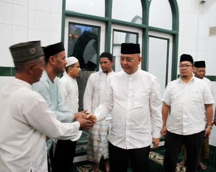 Di bawah guyuran hujan, warga pun berdatangan untuk ikut sahur bersama dengan Wali Kota beserta sejumlah jajarannya. Usai sahur dilanjutkan dengan Shalat Subut berjamah. Kemudian Wali kota didampingi Wakil Wali Kota danb Sekda menyerahkan bantuan sebesar Rp.40 juta kepada Ketua BKM Masjid Ath-Thohiriyah T Maniruddin Ali, serta diteruskan dengan pemberian santunan kepada 100 anak yatim.