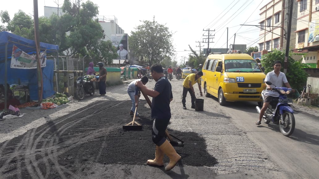 Instruksi Wali Kota pun langsung ditindaklanjuti Kadis PU Kota Medan Khairul Syahnan. Selasa (22/1), Syahnan telah menurunkan 50 personil untuk melakukan perbaikan. Sejumlah alat berat seperti stone walls dan apole men.  Melihat kerusakan jalan tidak cukup parah, perbaikan dilakukan dengan patching (penambalan).