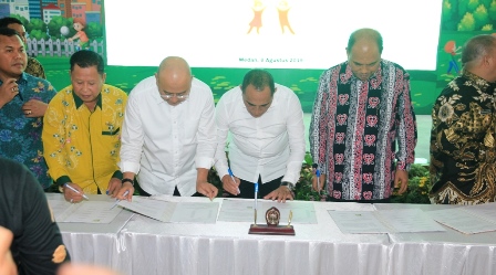 MEDAN, Eksisnews.com – Guna mewujudkan Indonesia Layak Anak, Wali Kota Medan Drs H T Dzulmi Eldin S MSi MH bersama seluruh Bupati / Wali Kota di Sumut dan Gubernur Sumut Edy Rahmayadi menandatangani Nota Kesepahaman Untuk Bersinergi Dalam Mewujudkan Indonesia Layak Anak di Rumah Dinas Gubernur Sumut, Kamis (8/8). Selain melindungi anak dari kekerasan di dalam keluarga, penandatanganan ini juga dilakukan dalam rangka mewujudkan hak-hak anak.