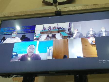 EKSISNEWS.COM, Medan – Majelis Hakim yang diketuai Abdul Aziz, SH, MH menjatuhkan hukuman terhadap Wali Kota Medan Nonaktif, Tengku Dzulmi Eldin selama 6 tahun penjara dengan denda Rp 500 Juta, subsider 4 bulan kurungan saat dipersidangan yang digelar di Ruang Cakra 2 Pengadilan Negeri (PN) Medan yang berlangsung secara Vidioconference, Kamis (11/6/2020).