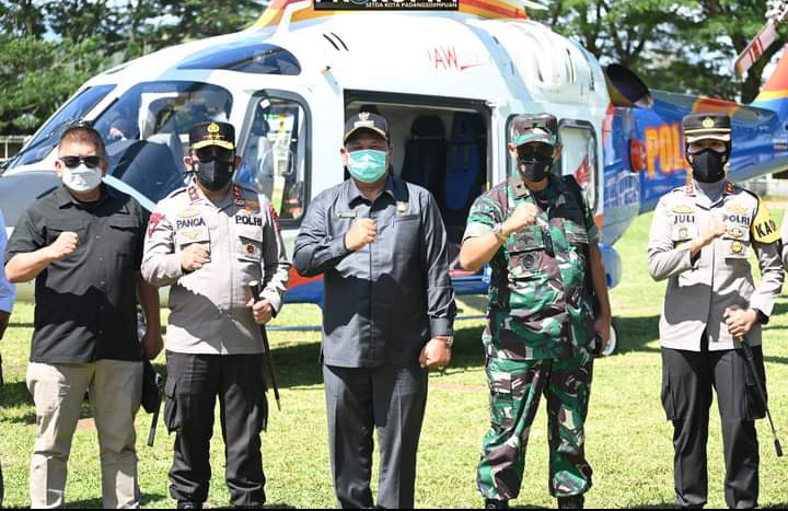 Kapolda Sumut Irjen Pol RZ Panca Putra Simanjuntak bersama rombongan mendarat menggunakan helikopter di stadion H. M. Nurdin Kota Padang Sidempuan sekitar pukul 12.00 WIB yang sebelumnya juga melakukan kunjungan ke kab. Tapanuli Selatan.