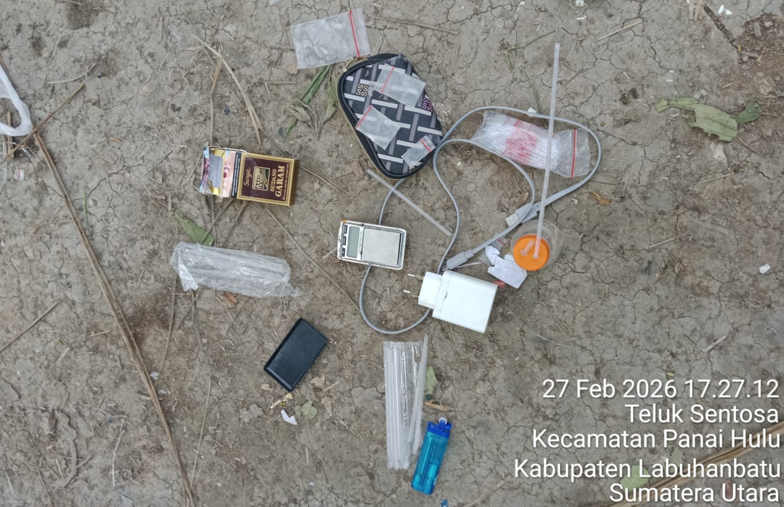 EKSISNEWS.COM, Labuhanbatu – Masyarakat setempat menggerebek lokasi yang diduga menjadi markas pemakaian dan transaksi narkotika jenis sabu-sabu di bawah pohon kelapa sawit, Dusun II Desa Cinta Makmur, Kecamatan Panai Hulu, Kabupaten Labuhanbatu, Jumat (27/02/2026) sekira pukul 17.00 WIB.