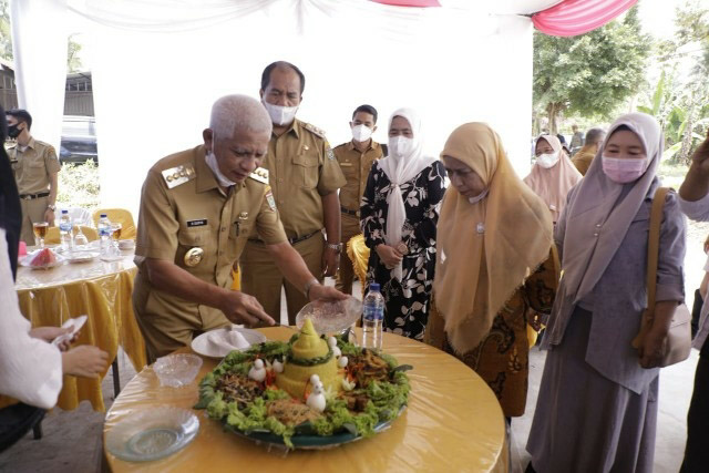 Dikesempatan ini juga Bupati dan Wakil Bupati Asahan beserta istri memotong nasi tumpeng yang diberikan kepada Panitia dan tokoh masyarakat. (ENC-Akm)