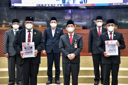 EKSISNEWS.COM, Medan – Kembali meraih Opini Wajar Tanpa Pengecualian (WTP) ke delapan kali berturut-turut Pemerintah Provinsi (Pemprov) Sumatera Utara (Sumut) dari Badan Pemeriksaan Keuangan (BPK) RI Perwakilan Sumut atas Laporan Keuangan Daerah (LKPD) Tahun Anggaran 2021, di Ruang Rapat Paripurna DPRD Sumut, Jalan Imam Bonjol Nomor 5, Medan, Jumat (27/5/2022).