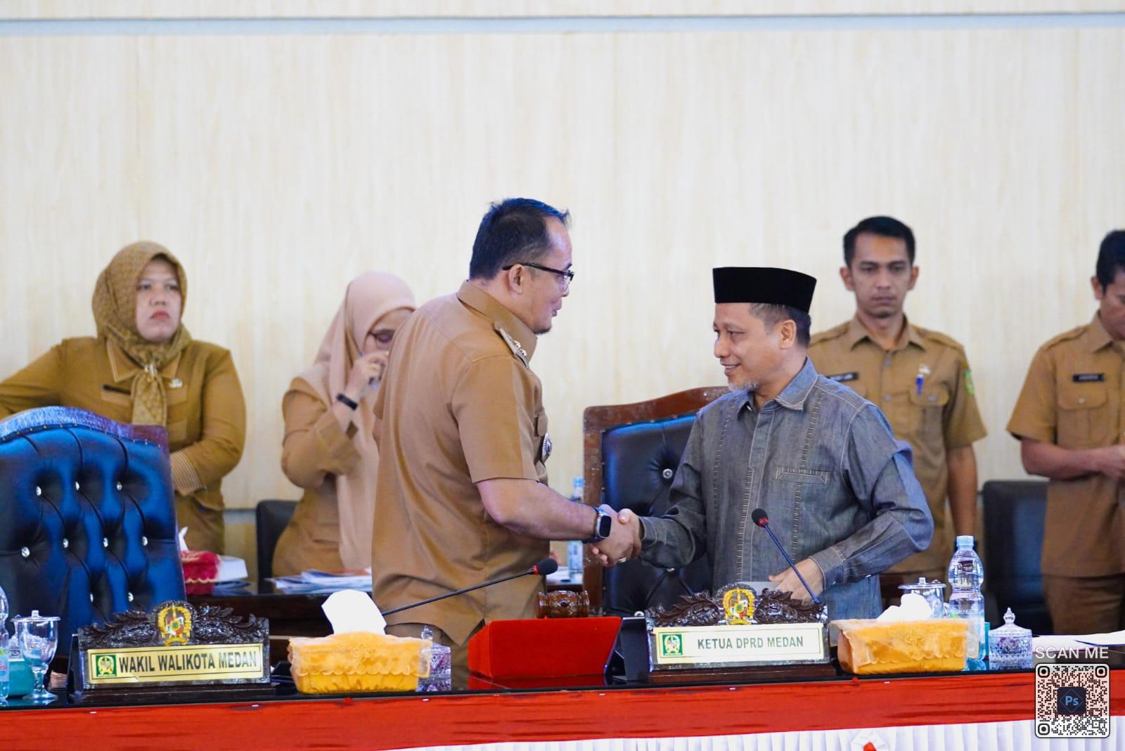 “Kami berharap nantinya Ranperda ini dapat disetujui bersama menjadi Peraturan Daerah (Perda) dalam waktu yang tidak terlalu lama. Semoga kita selalu mendapat perlindungan, tuntunan dan bimbingan dari Allah SWT, Tuhan Yang Maha Esa guna menggerakkan pembangunan kota untuk mewujudkan visi pembangunan jangka panjang kota yaitu ‘Medan Kota Global yang Inklusif, Maju dan Berkelanjutan’,” pungkasnya. (ENC-1)