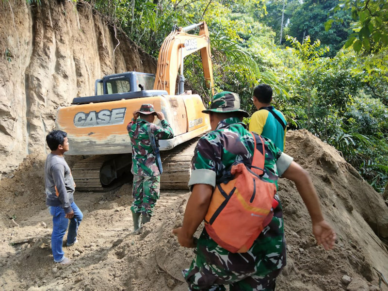 “Terpaksa kita yang turun tangan bang agar alat berat bisa maksimal buka jalannya ,biasa ni bang sama kami sebagai anggota TNI AD memang harus peduli demi membantu Pemkab dalam mewujudkan pembangunan,”ucap Babinsa.