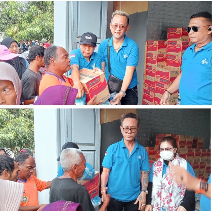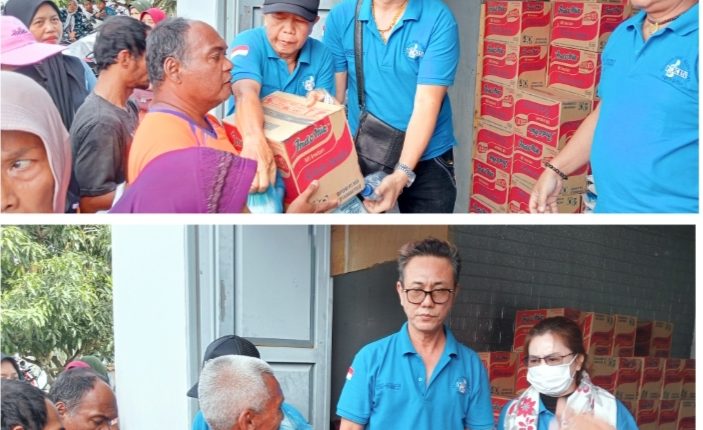 Tampak pengurus yang hadir Pembina Umum Seng Pon, Ketua Umum YAKIN Hermanto ST didampingi Wakil Bendahara Hock Siang, Kepala Humas YAKIN Handoko SE serta pengurus lainnya yang bebaur bersama warga guna memberikan paket sembako.
